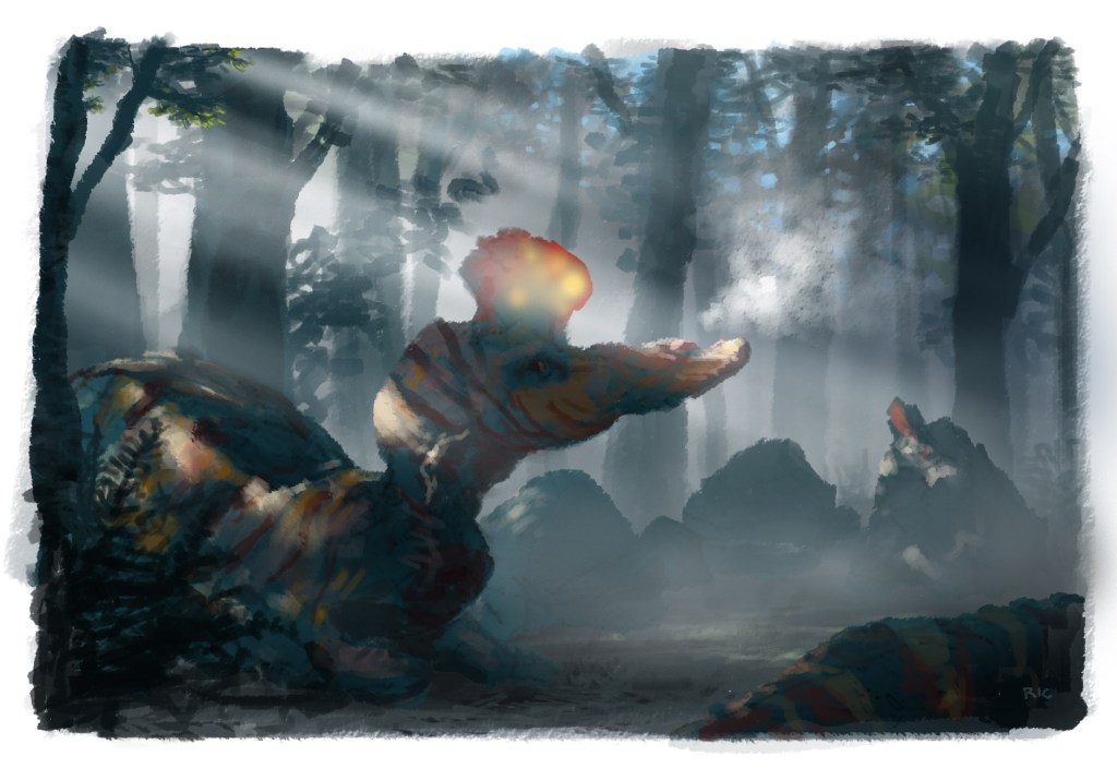 An ongoing illustration project to explore colours and mood in a prehistoric setting. And one man goes on a journey to overcome obstacles larger than life.